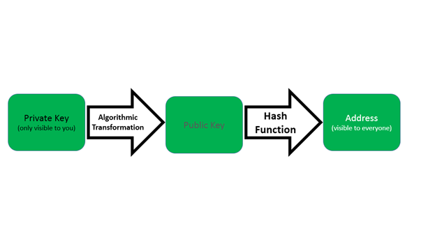 To carry out a transaction a party needs 2 things: a wallet (public key) and a private key. A wallet is a string of digits and letters, also called a public key. It is an address that appears each time a transaction is done. The private key is a string of random digits that should be kept in secret.