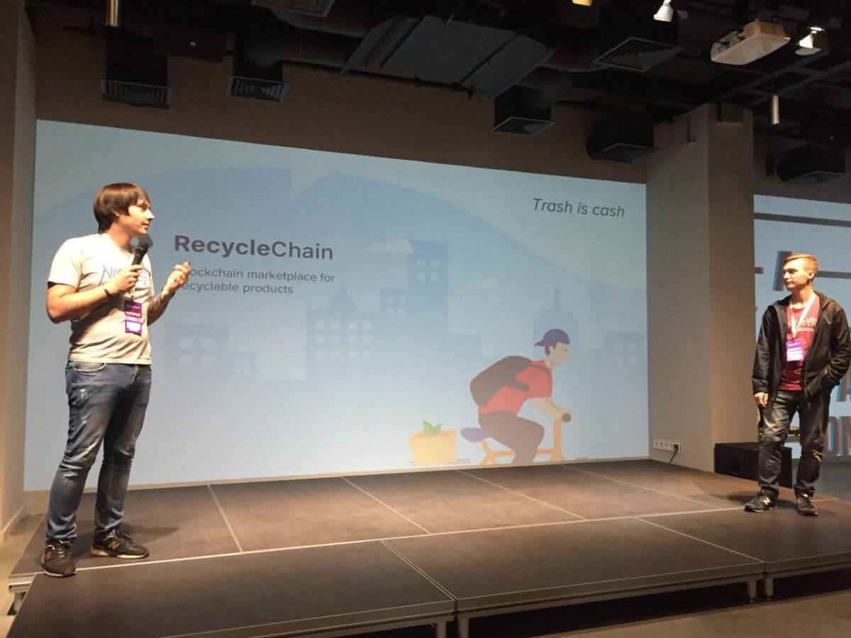 An app slogan was: “Trash is Cash”. The main idea was to motivate people to sort the garbage themselves and bring it to collection points or throw garbage in different tanks. You can get cryptocurrency for each type of sorted waste. It’s really possible to exchange if a point approves that you brought the correct sorted waste. In this case, a collection point will transfer bonuses. For each type of garbage, there are different tokens. A сollection point, in its turn, transfers waste to waste processing plant, which buys it for the cryptocurrency. Big enterprises can also bring waste in large volume.