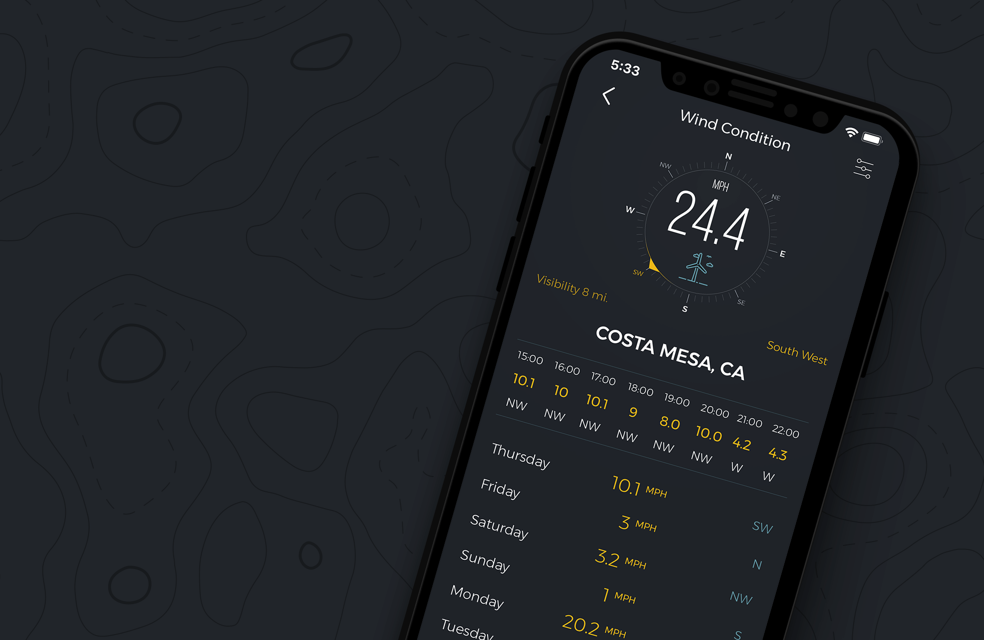 - live wind and weather forecasts for user locations
