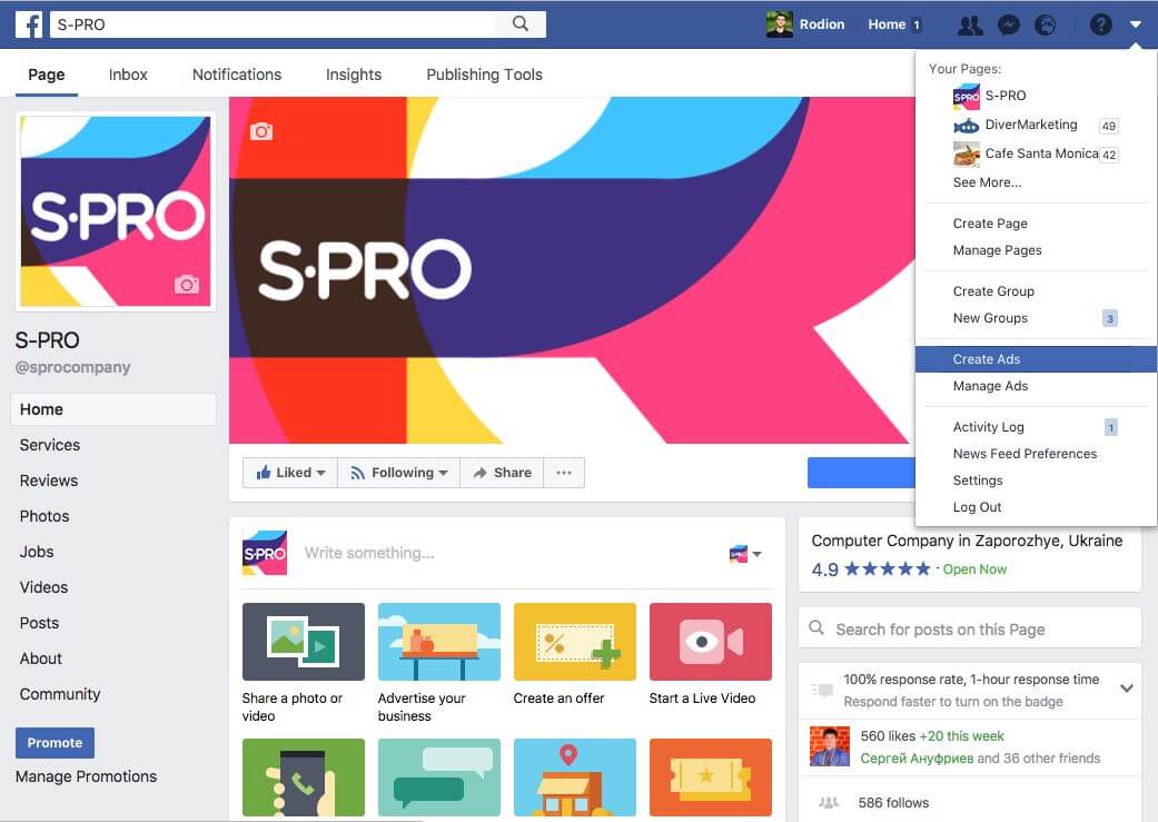 Let’s consider how you can set up an ad campaign and target it at the developer audience. First of all, you need to have a business page. Without it, you won’t be able to set up your ad targeting.