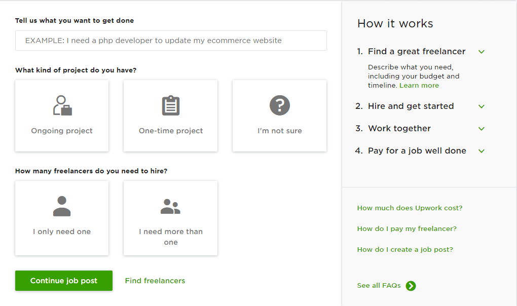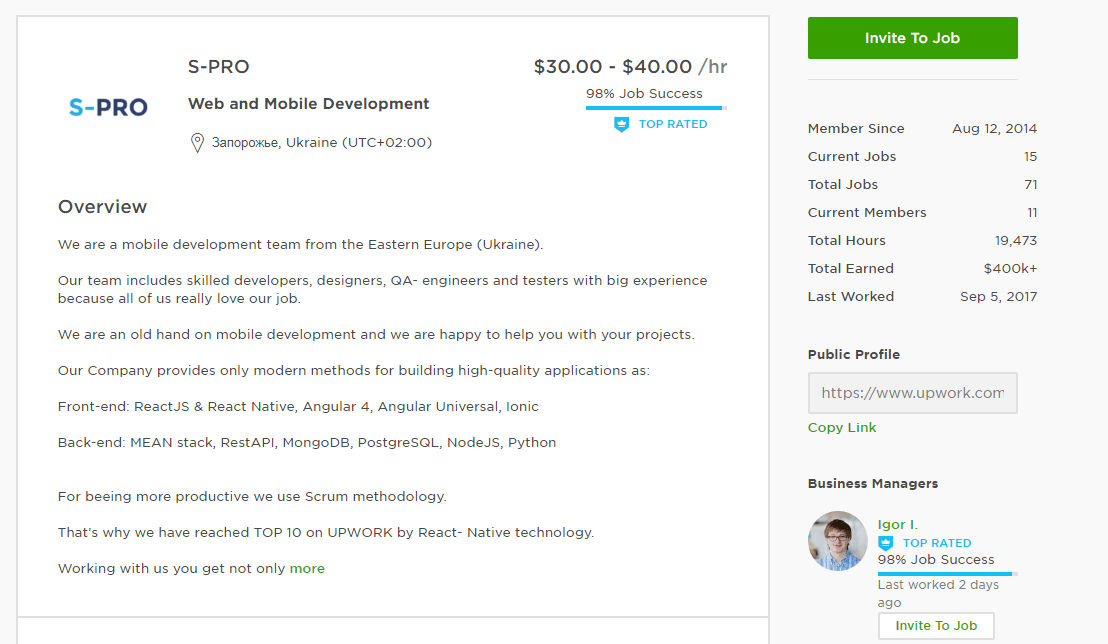 Upwork is the most popular international freelance platform. There you can find many professionals of all specialties possible that can help you implement your project. Let’s consider the essential steps to starting fruitful cooperation with the best developers.