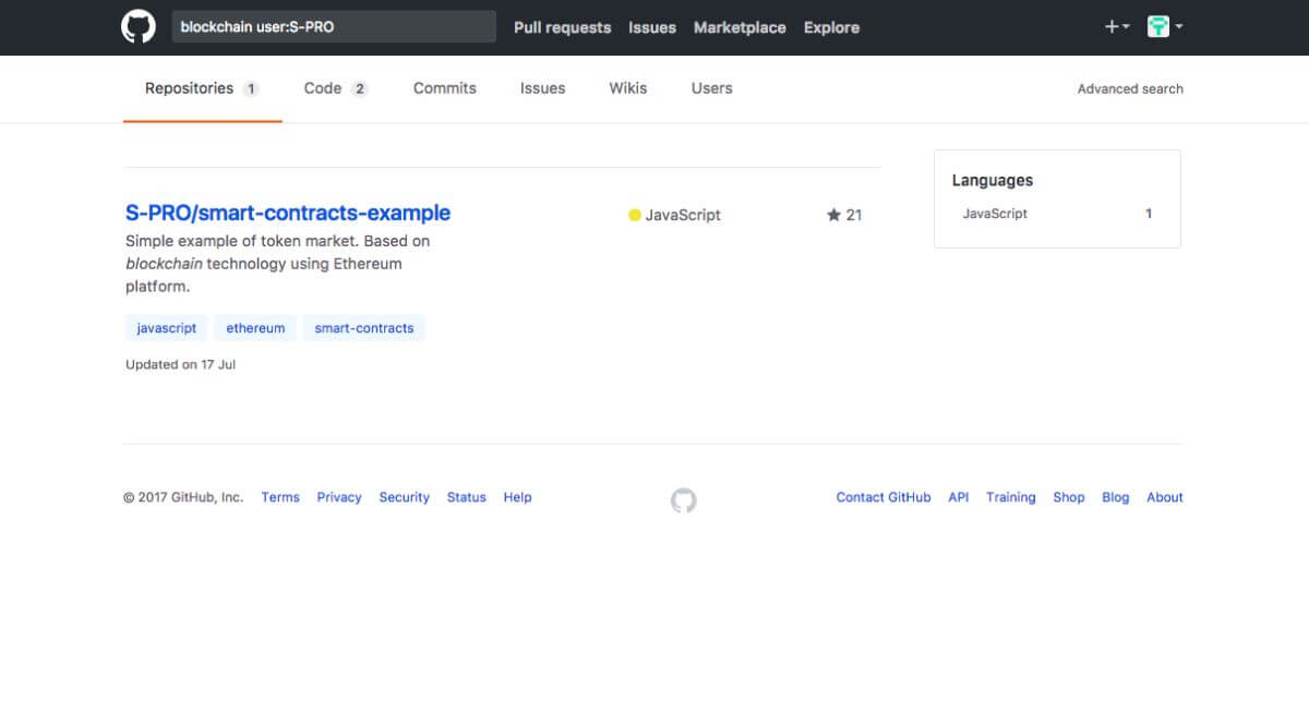 There are 6 535 (or even more) repositories containing this keyword. That’s a very popular topic. If you understand a topic well, you can evaluate the developer’s blockchain knowledge according to the technical specifications. In case you know more than a beginner, you can assess it by the number of stars and sharings of each repository.