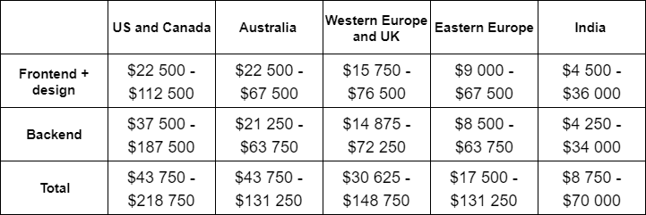 As you can see, the range of development prices is quite large even within one region, but still, it is highly advisable not to choose a company just based on a low price. On a mandatory basis, pay attention to the experience of the team, projects in its portfolio, and also whether it specializes in solutions for your business. If developers have good experience in implementing projects for a particular industry, the process of cooperation will be much easier and more efficient.