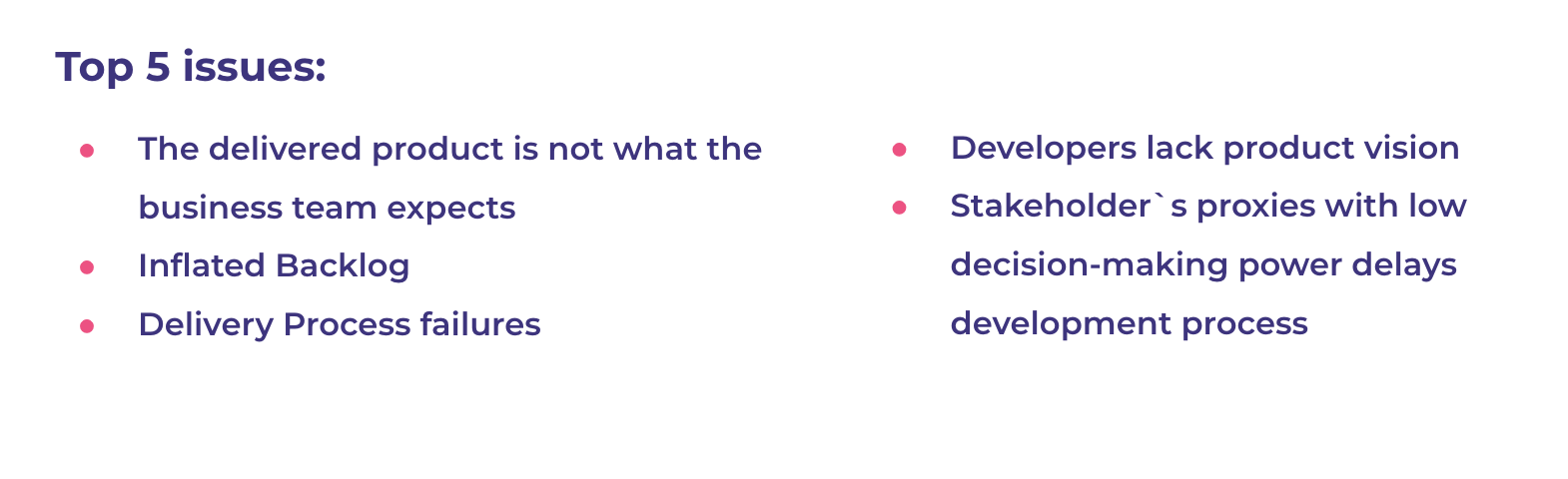 - Do you think that agile can solve or at least reduce some of those 5 issues?