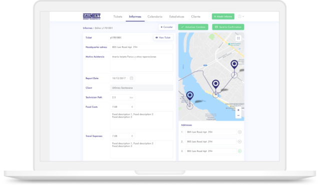 Reporting. Users are able to create reports, calculate and see routes on the map, save distance, add materials used and include other details.