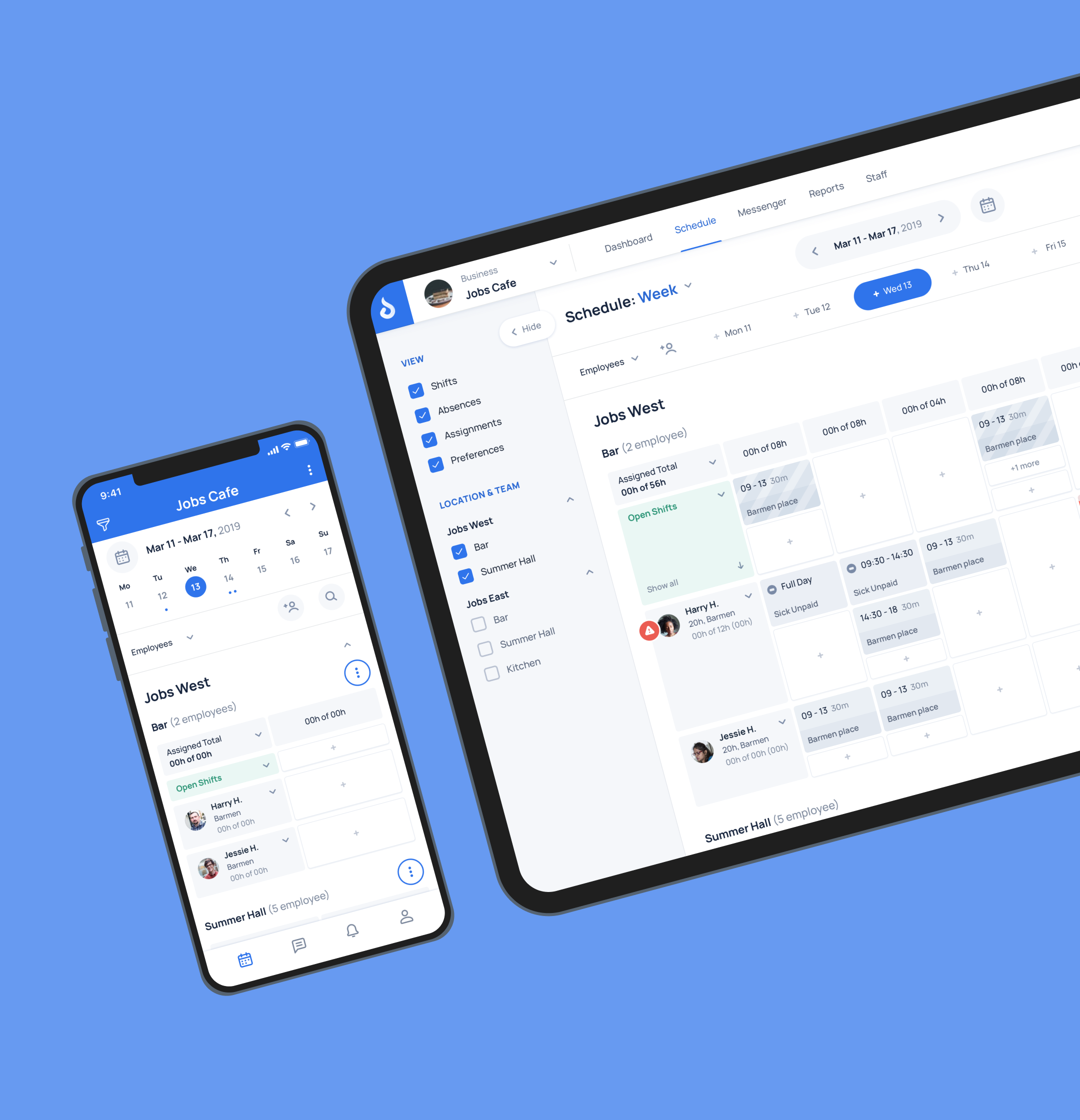 A staff management system for hospitality businesses that automates and optimizes scheduling and time tracking
